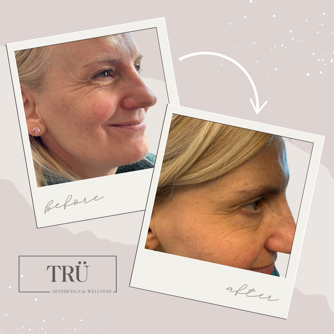 Botox is a neuromodulator that temporarily relaxes the muscles responsible for wrinkle formation. When injected into the small muscles around the outer eye area (where crow’s feet develop), Botox blocks nerve signals, causing those muscles to relax and smooth out the skin.